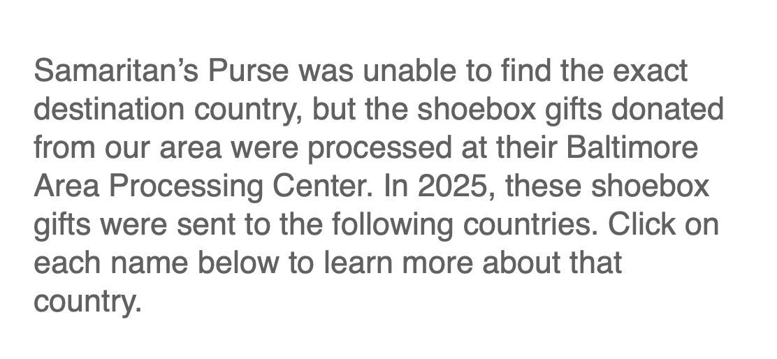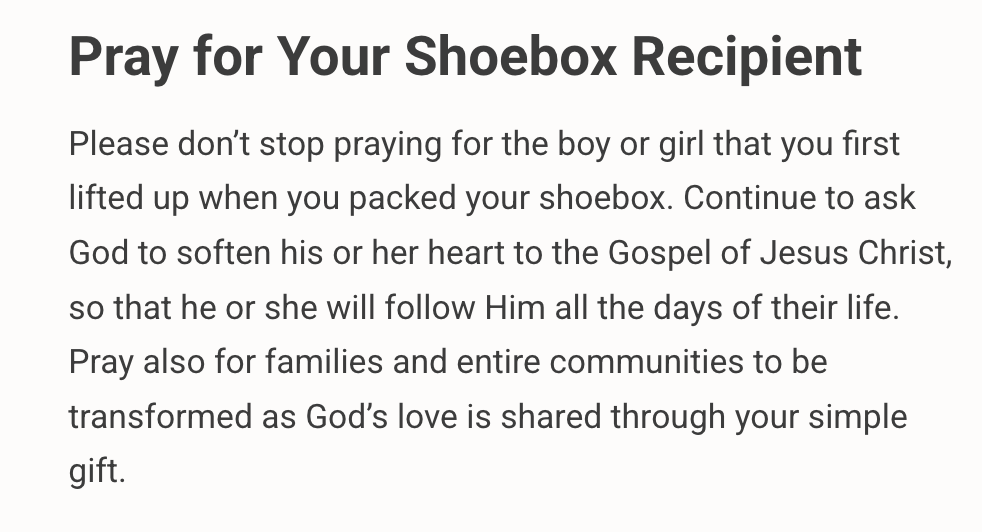 Operation Christmas Child: Shoebox Info ~ 11/1/26